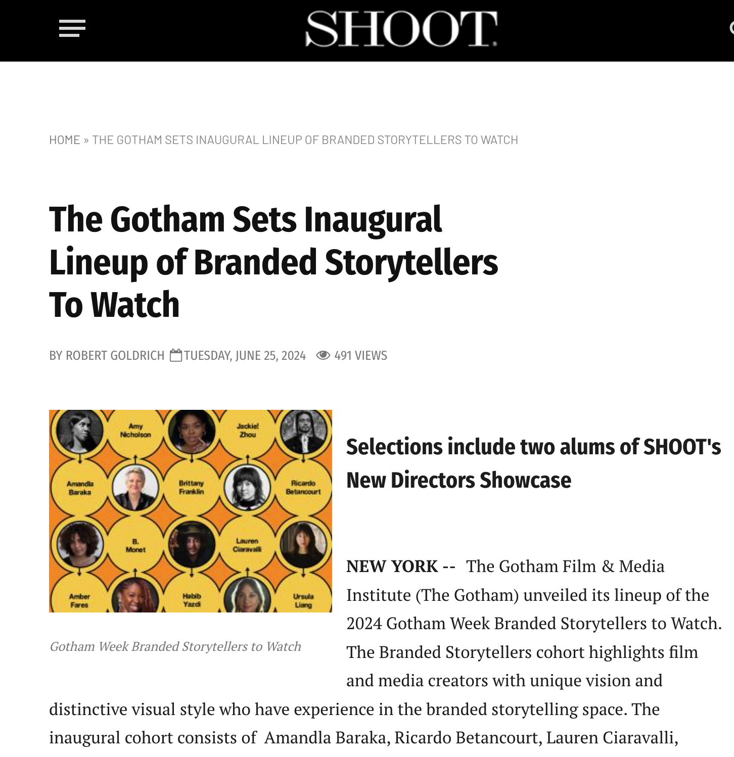 Gotham Institute "Branded Storyteller to Watch" 2024